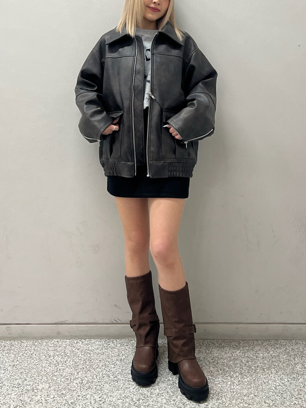 高麗春奈(EMODA)のブルゾン「ヴィンテージライクオーバーブルゾン」を使ったコーディネート