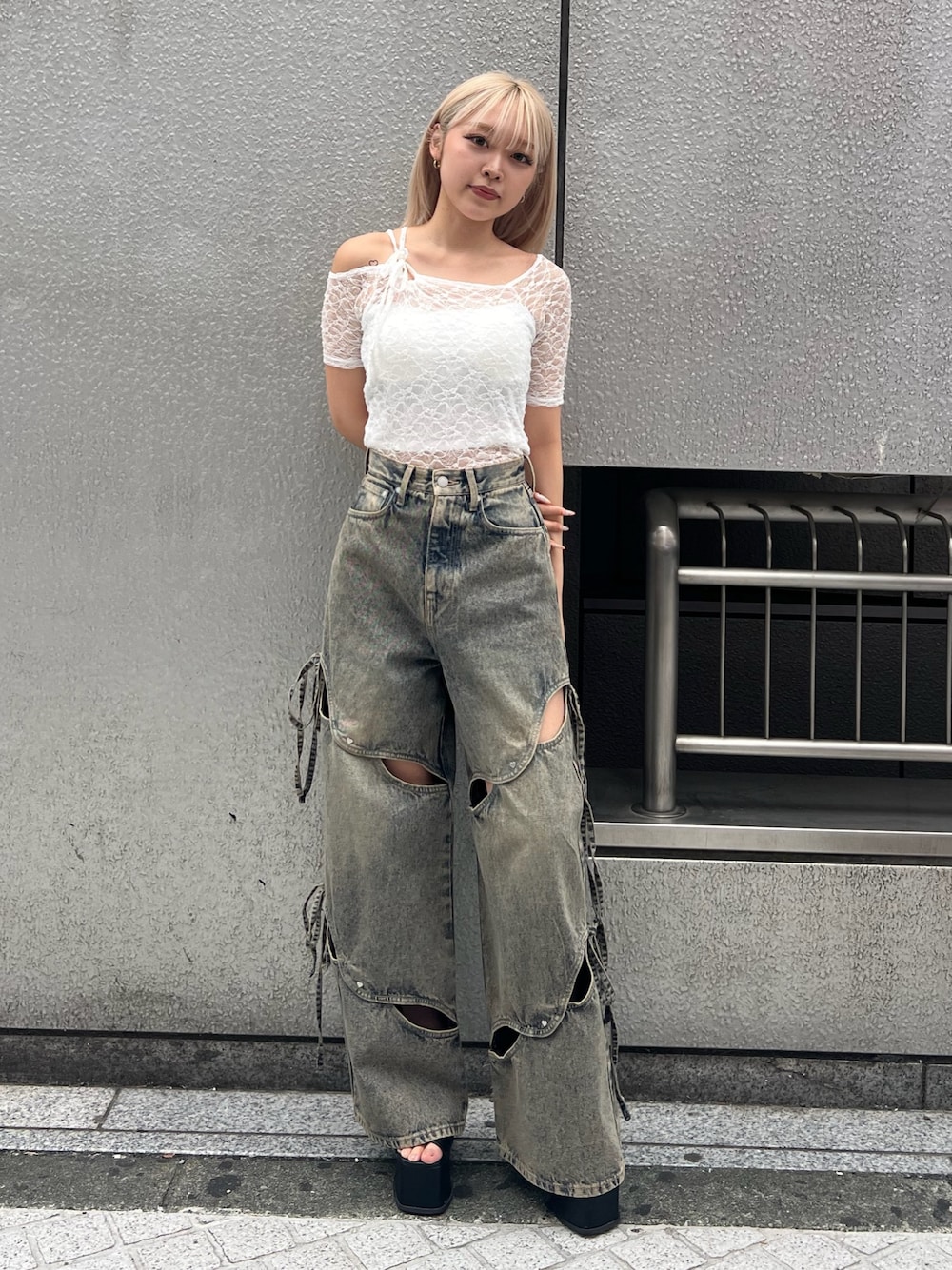高麗春奈(EMODA)のTシャツ/カットソー「レーススキンフィットトップ」を使ったコーディネート