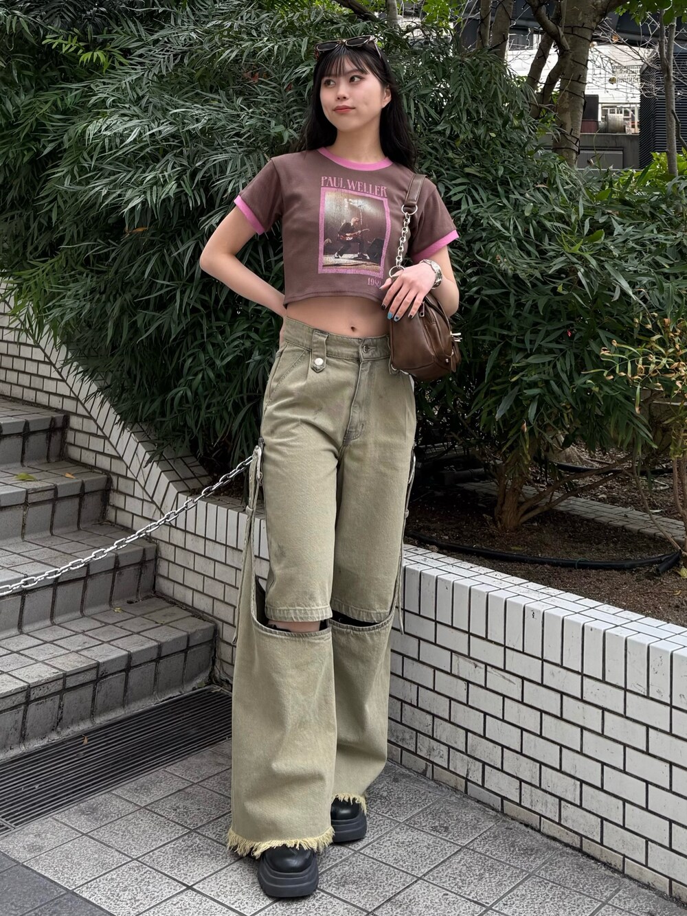 【トップス】 Kevin Cumminsとのコラボアイテム★ タイトなシルエットですが伸縮性抜群で着心地◎ ショート丈なので、どんなボトムスを合わせてもスタイルが良く見えます! 【ボトムス】 162cmでSサイズ着用。 とにかく脚長効果抜群!! サイドのベルトは取り外せるのでハーフパンツとしても着用可能◎ 長めの丈感の為、厚底シューズと合わせるのがオススメです♪ 【バッグ】 まちがしっかりあり、ポケット付きで収納力◎ ブラウンはどんなコーデとも馴染み使いやすいです☆
