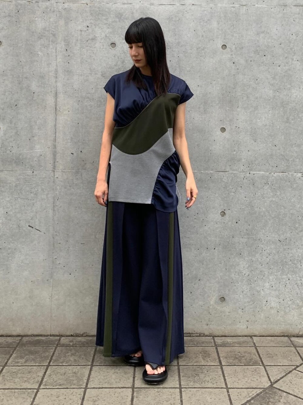 AYAKO(UN3D.)のTシャツ/カットソー「ASYMME CURVE LINE TOP / アシメカーブライントップ」を使ったコーディネート