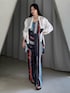 【トップス】 今季のシーズンテーマ【地層】をタイダイストライプ柄に落とし込んだオリジナル柄アイテム。 柔らかなタイダイに鮮やかなカラーを掛け合わせ、幾何学柄を混ぜ込んだ印象的な柄になっています。 立体的なタックデザインを掛け合わせ動きのあるデザインに◎ 夏にさらっと着れる滑らかな素材感です。 同素材でパンツも展開しているのでセットアップでの着用もオススメです。 【ボトムス】 今季のシーズンテーマ【地層】をタイダイストライプ柄に落とし込んだオリジナルアイテム。 柔らかなタイダイに鮮やかなカラーを掛け合わせ、幾何学柄を混ぜ込んだ印象的な柄になっています。 柄を際立たせたシンプルなディテールのパンツ。 とろみのある素材感で着心地の良さも兼ね備えています。 同素材でトップスも展開しているのでセットアップでの着用もオススメです。