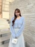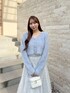 【ニット】 ふわもこなニットカーディガン よーく見ると少しキラキラしているのがポイントです◯ トップスとして着ていますが、 もちろんカーディガンとして肌寒い日にも活躍してくれます✨️ 【スカート】 昨年大人気だったスカートが復刻✨️ 程よいボリューム感で、 歩くたびの揺れ感がかわいいです♥