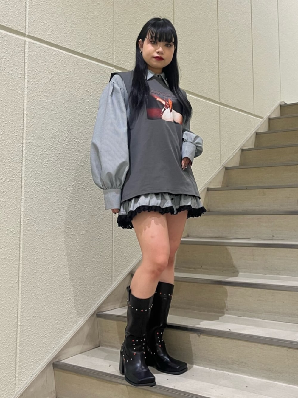 MAMI(jouetie)のシャツ/ブラウス「【再入荷】ヘムレースフリルチュニックシャツ」を使ったコーディネート