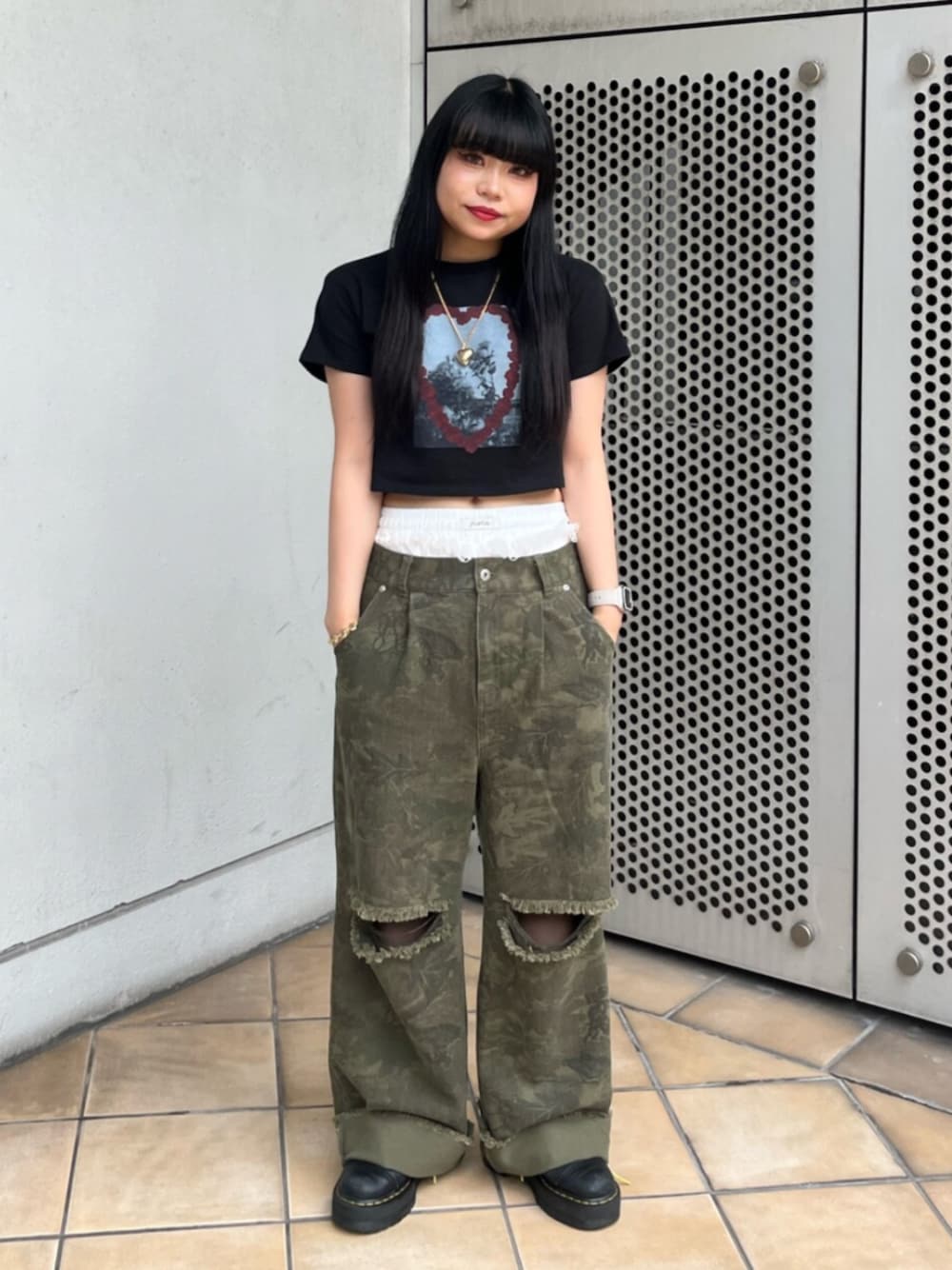 【トップス】 コンパクトなサイズ感でピタッと着るタイプのTシャツです👍🏼おへそがちょうど見える丈感でなのでスタイルアップ間違いなしです! 【ボトムス】 ウエストが大きめに作られているのでパンツのレイヤードもできちゃいます◎ワイドなのでトップスはコンパクトなサイズ感のものがオススメです👀身長158cmで裾長めなので、ロールアップ&厚底やヒールのシューズマストです!
