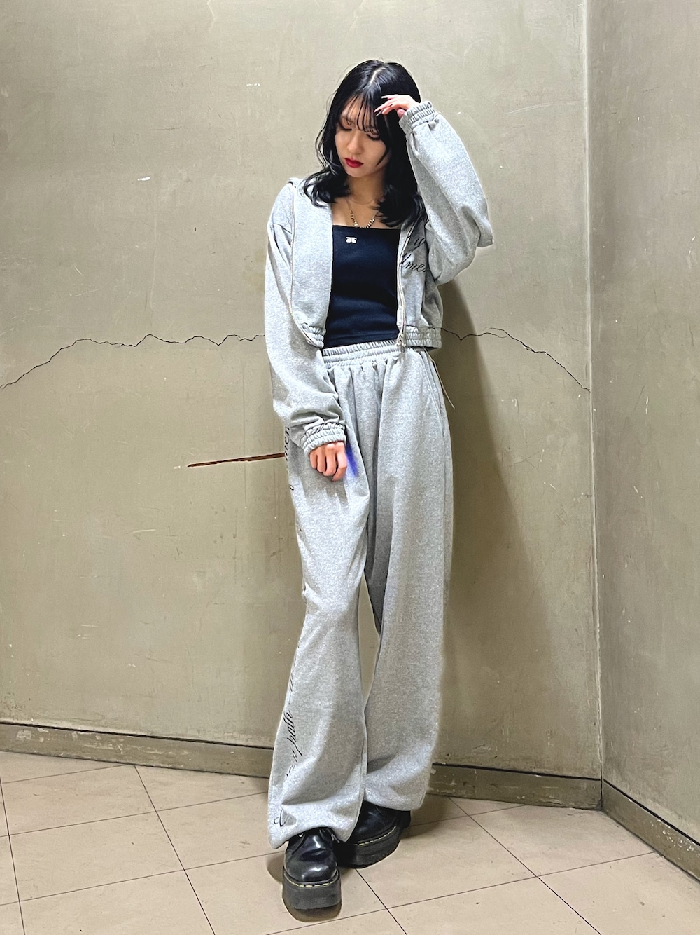 MOMOKA(jouetie)のスウェットパンツ「ラメルーズスウェットパンツ」を使ったコーディネート