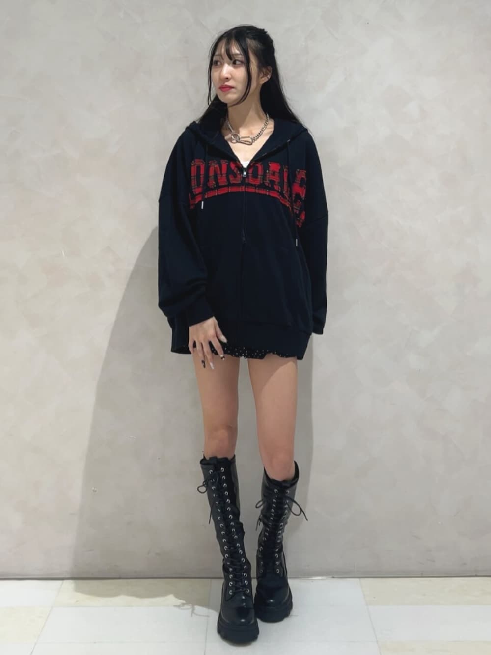 MOMOKA(jouetie)のブーツ「ストレッチレースアップロングブーツ 厚底 靴 2026春夏」を使ったコーディネート