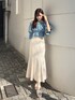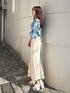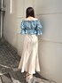 » blouse デニム×オフショルの珍しい組み合わせは、まわりとの差別化にも◎ 鮮やかなブルーがお肌の色を綺麗に見せてくれます。 » skirt 人気の定番マーメイドスカートは、立体感のあるデザインで、シンプルながらも華やかに決まる1枚です︎⸜❤︎⸝ 167cm / Mサイズ着用