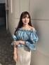 kyoka(MERCURYDUO)のシャツ/ブラウス「デニム2WAYオフショル五分袖シャーリングブラウス」を使ったコーディネート