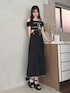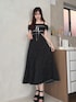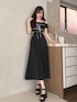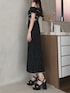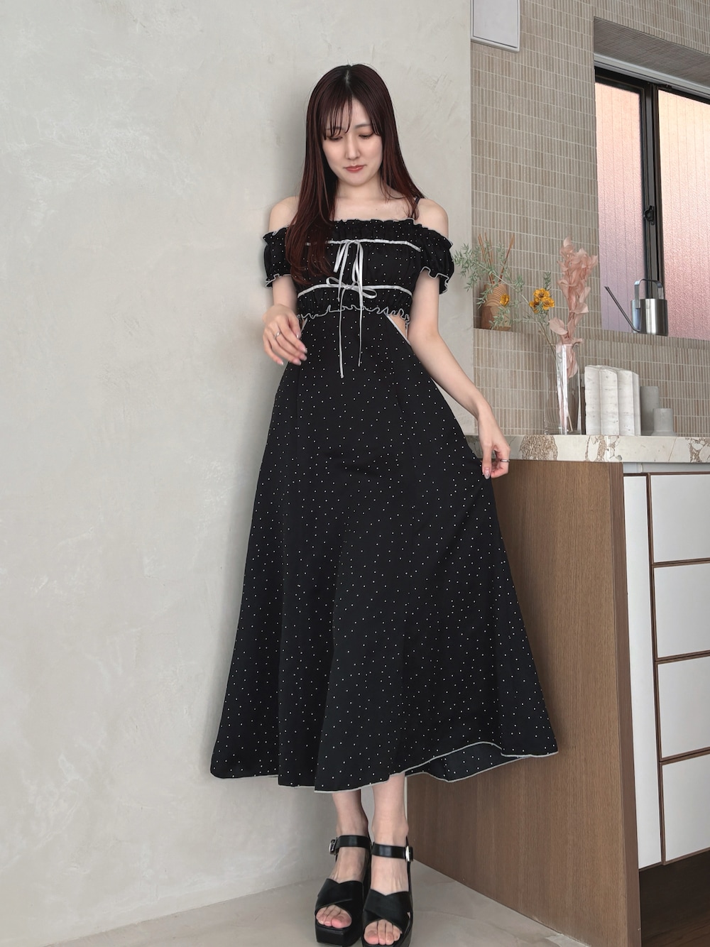 RUNWAY channel メロクロコラボ︎🎈 » onepiece 黒×白ドットの大人な甘さを詰め込んだコラボワンピース︎⸜❤︎⸝ ウエストのさりげないワッペンがワンポイントに◎ 167cm / Mサイズ