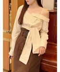 » tops 優しいイエローカラーがトレンドライクなトップス。 ワンショルダーの肌見せが、シャツデザインに抜け感をプラスします。 » skirt ほっこり温かみのある生地がシーズンムードを高めてくれるスカート。 足元が寒い日にもおすすめです◎ 167cm / Mサイズ