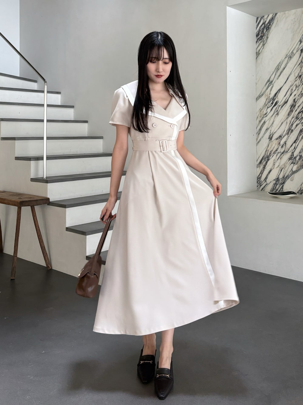 kyoka(MERCURYDUO)のワンピース「バイカラーハーフスリーブトレンチフレアワンピース」を使ったコーディネート