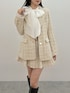 » jacket フレアスリーブ&キュッとくびれるシルエットが人気のジャケット。 ラメ糸を織り込んだ生地を使用しており、春らしい華やかなスタイリングに◎ 167cm / Mサイズ » blouse ハリのあるオーガンジー素材がふんわり華やかなブラウス。 1枚で春のムードが高まります。 » pants ミニ丈でも安心のミニスカパン。 ハイウエストデザインでウエスト位置を高く見せてくれます。 167cm / Mサイズ
