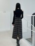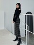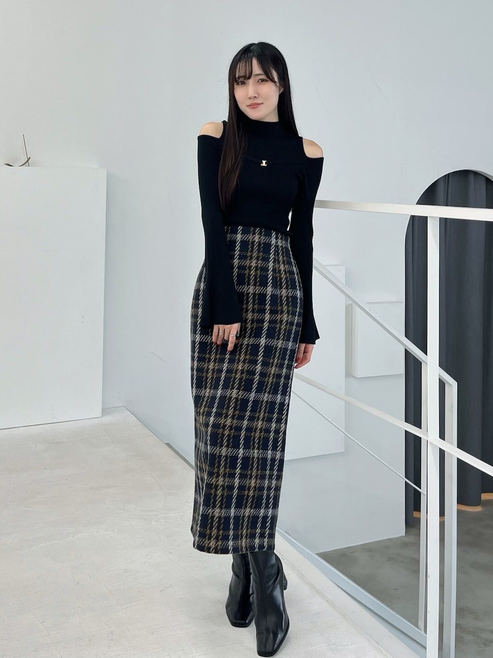 » tops 胸元のビットがトレンドライクなリブニット。 肩あきデザインで抜け感のある印象に◎ » skirt ハイウエストのナローシルエットが腰周りをすっきり綺麗に見せてくれます。 大きめのチェック柄がスタイリングのアクセントに◎ 167cm / Mサイズ