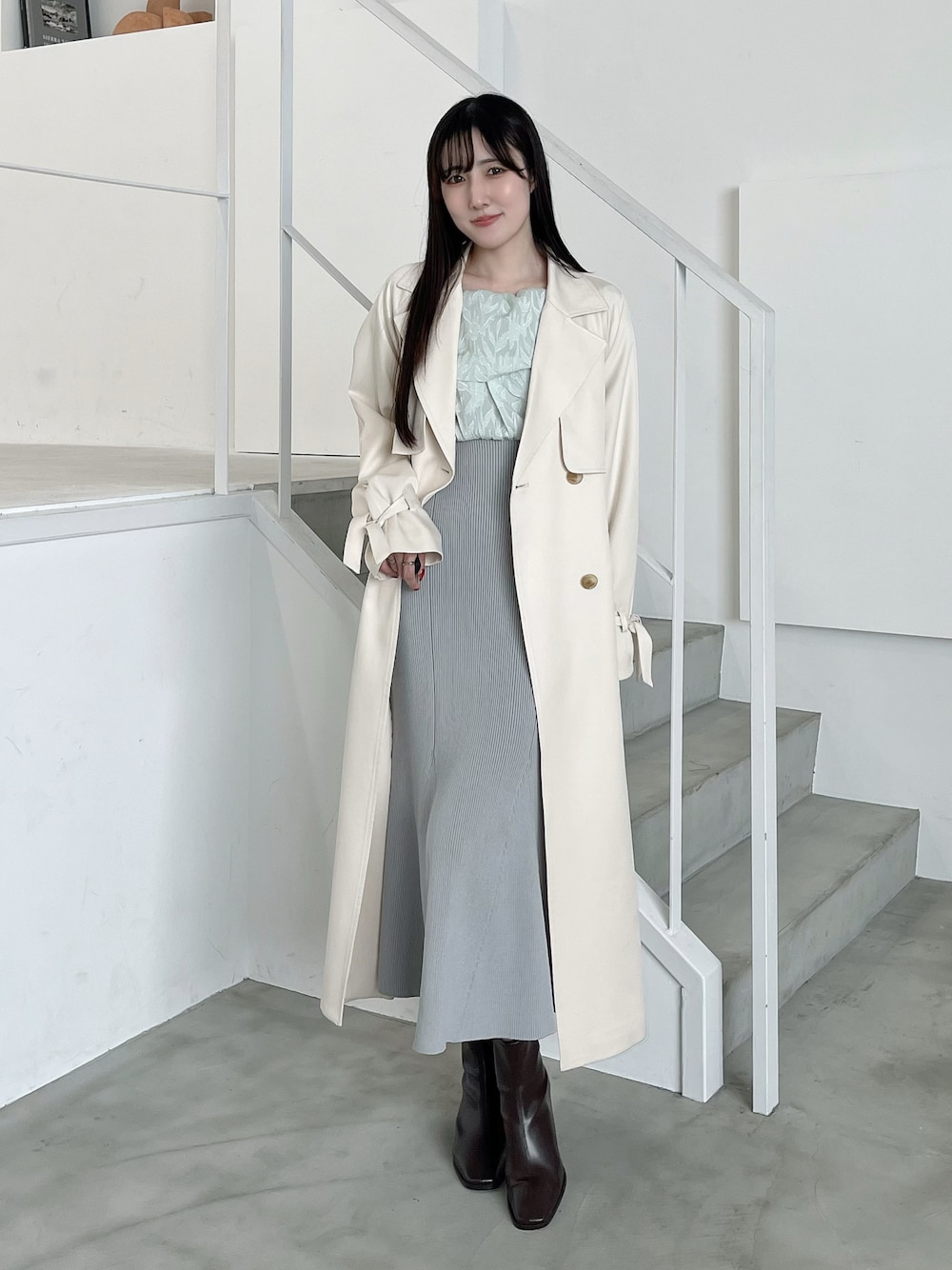» outer 初春にぴったりのトレンチコート。 裏地付きのしっかりとした生地が、朝晩の冷たい風もしっかり防いでくれます。 167cm / Mサイズ » onepiece ブラウス+ニットスカートをドッキングしたワンピース。 ウエストのブラウスがパフっとする立体的な仕様がポイントです◎ 167cm / Mサイズ