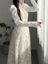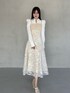 » onepiece シャツ×ビスチェのレイヤード風ワンピース。 パワショルやレース、ビスチェのアシンメトリーなデザインがスタイリングのアクセントに。 167cm / Mサイズ