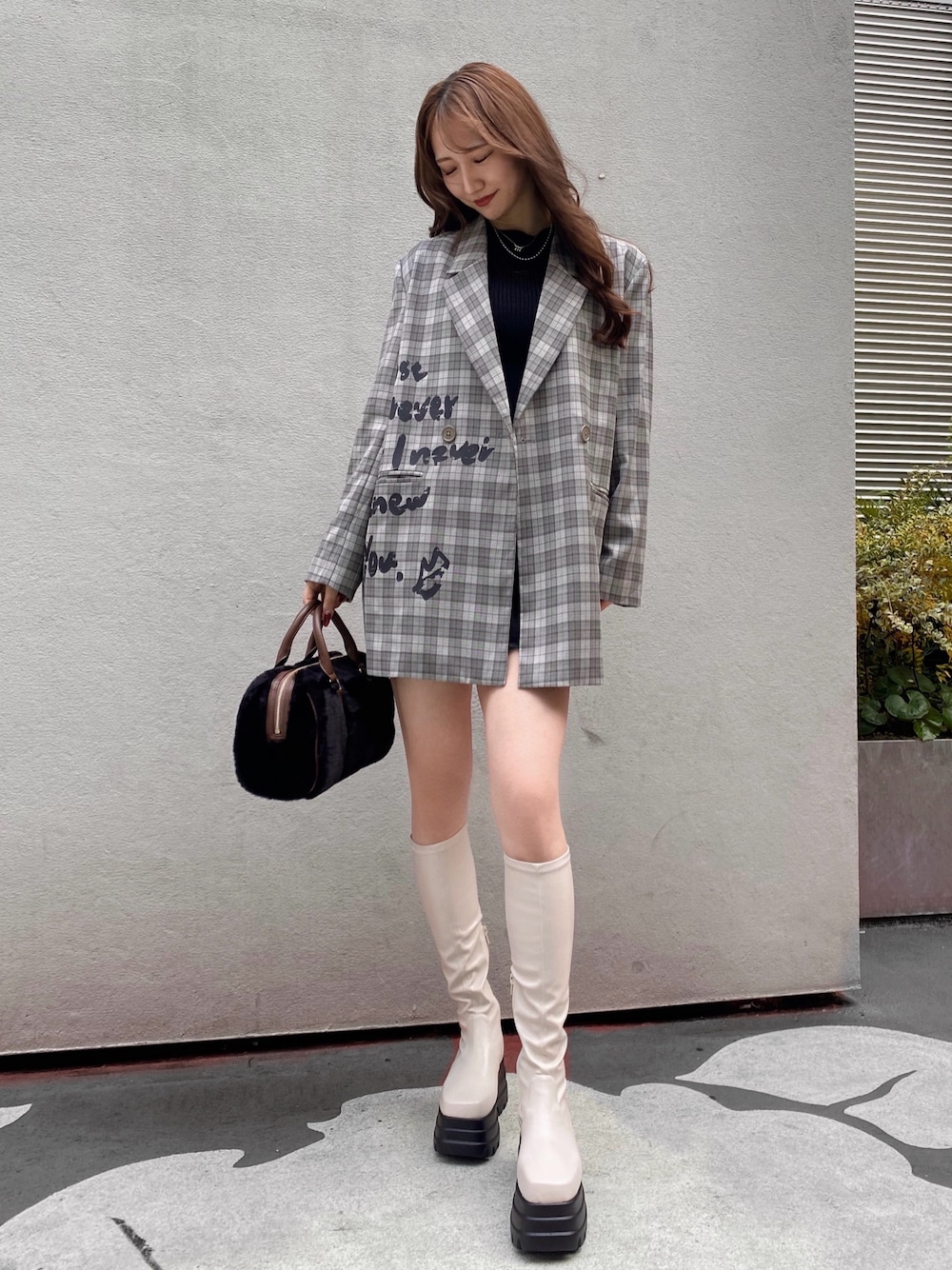 RIA(EVRIS)のテーラードジャケット「グラフィックオーバーサイズチェックジャケット」を使ったコーディネート