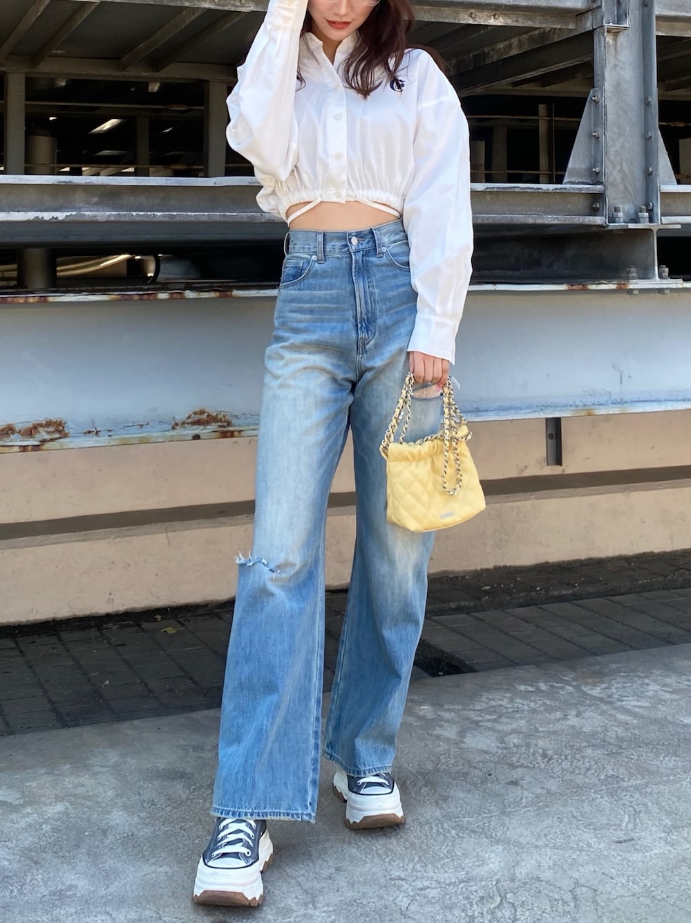 RIA(EVRIS)のデニムパンツ「サイドカッティングレースワイドデニム」を使ったコーディネート