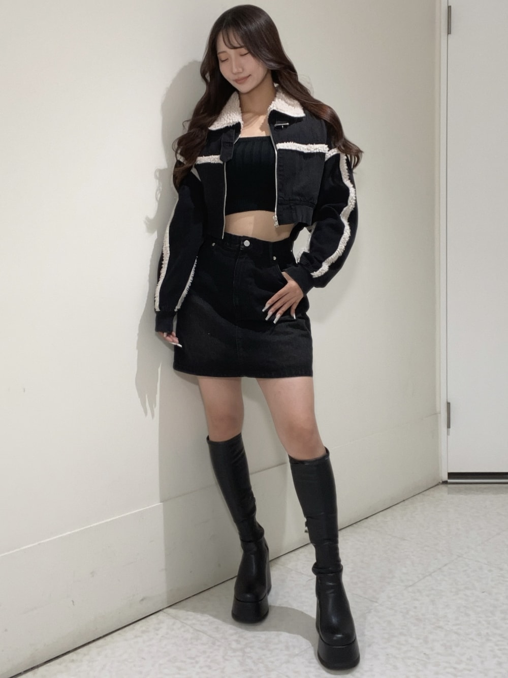 outer▶︎首元にボアがついて最強に可愛アイテム!ボリューム袖でニットや裏起毛パーカーなどもはいります!162cmでへそ上10cmほどの丈です。 skirt▶︎後ろポケットにボアがついていて盛れるアイテムです!162cmで骨格ウェーブですがMサイズ着用してます! boots▶︎最強盛れブーツで靴下感覚で履けます! 24.5cmでLサイズでぴったりです! tops▶︎アンサンブルのビスチェを合わせています。ニット生地でピタッと落ちてこないのでインナー合わせにおすすめです!