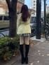 黄色がポイントのニット🌸 ウエストのリボンはつけても外しても可愛いです🎀ニットもチクチクしない素材なのでとっても着心地良いです! パンツは少し短めのお造りになっていてボリューム感あるので足も細見えします! ブーツは普段23センチでMサイズ着用してます❣️ ヒールにリボンが施されているので後ろ姿も可愛いです