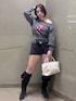 【tops】ザ・ローリング・ストーンズのロゴをフロントにプリントされたワンショルダートップス!ビンテージ加工に下の太めのゴムがスタイル盛れます! 【pants】ピタッとしたニットパンツ!生地感が柔らかく、暖かいです♡ 【shoes】23.5cmMサイズ着用 フリンジ部分は取り外し可能!万能デザインのロングブーツ!!フリンジを外せば、クシュっとしたウエスタンブーツとして、2WAYで着用できます⭐️ 【bag】まちしっかりあるのでお荷物もたくさん入れられます!