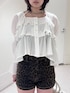 【tops】甘めブラウス🎀 デコルテ周りも広めに開いているので抜け感がありどんなボトムにも合わせやすいです! 【pants】ストレッチ性のあるツイル生地を使用したマイクロミニのショートパンツ!タイトなシルエットで着るだけでトレンド感あるスタイリングに⭐️ 【boots】フリンジ部分は取り外し可能な2wayブーツ👢フリンジを外せば、クシュっとしたウエスタンブーツとして着用できます! 【bag】柔らかいフェイクレザーで大容量のボストンバック🧳🤍 エンブレムをパッチワークとスタッズデザインが可愛くどんなスタイリングとも相性🙆♀️