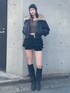【アウター】 襟のファーが取り外し可能の2WAYで着れるレザーブルゾン。 ボリューム感のあるシルエットで中綿が入っているためあったかいです! 【トップス】 アシンメトリーなネックラインと細めのチョーカーが特徴のニット。 トレンド感のあるリングボタンデザインがかわいいです💕 薄めのニットなので、アウターのインナーや春先でも一枚で使える万能アイテム! 【ボトムス】 ティアードデザインのショートパンツ。 ボリュームがあるため脚が細く見える効果があります! ウエストがゴムなので履き心地がいいです! 【シューズ】 ポインテッドトゥで足元をすっきりと見せつつ、程よいルーズ感のある筒周りで脚全体を細見えさせるデザインです。 24.0センチでMサイズ着用してます!