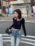 【トップス】 アシンメトリーなネックラインと細めのチョーカーが特徴の二ット。 トレンド感のあるリングボタンデザインがかわいいです💕 薄めのニットなので、アウターのインナーや春先でも一枚で使える万能アイテム! 【ボトムス】 ハートのグラフィックがかわいいワイドデニム!ハイウエストで太すぎないワイドなので脚のシルエットを綺麗にカバーしつつ脚長に見せてくれます。 身長169センチでMサイズ着用してます! 【シューズ】 名前からかわいいテディーブーツ♥ ヒール10センチのこっそり激盛れアイテム! 24.0センチでMサイズ履いてます。