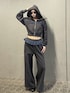 【トップス】 ショート丈のスウェットフーディ。 ゆったりとしたシルエットでジャストウエストな丈で色々なボトムスと合わせやすいです!! 【ボトムス】 トップスとセットアップではけるスウェットパンツ!! 身長169センチでローライズではいてます! 【シューズ】 ヒール5.6センチのヒールスニーカー。 安定感抜群の履き心地で、つま先から見えるリボンがかわいいです💕