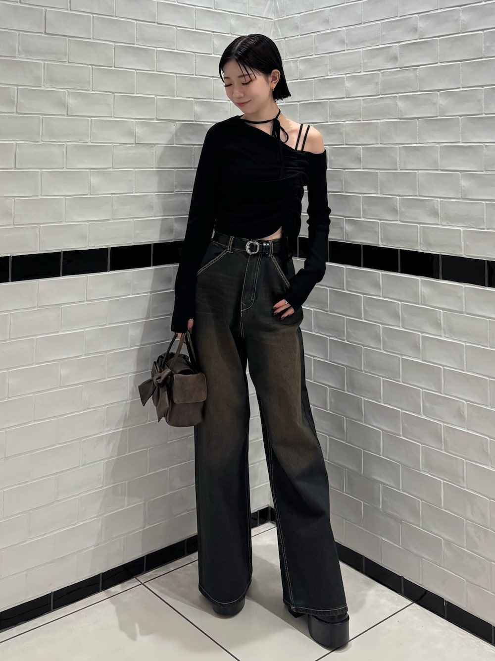 【トップス】生地少し厚手🙆♀️親指通せるカットが入っているので袖丈少し長めに作られていて、腕が盛れます💪ギャザーは調節ができるので、緩めるとお腹出ない丈感になってます! 【ボトムス】ダボッと感強めのワイドパンツ!後ろポケット上目に着いているので、おしり上がって見えます👀✨丈感は、160cm骨格ウェーブが12cmヒール履いて、3cmほど余ります! 【シューズ】12cmのヒールブーツ!高さはあるけど、前との高低差が少ないので普段ヒール高めの靴履かない方でも履きやすいです!安定感は抜群!!23.5でM着用です 【バッグ】ショルダーにもなるバッグ👜大きめリボンが可愛い🎀ポケット多めなので使い勝手🙆♀️