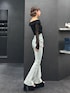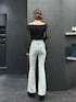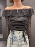 【トップス】レースのオフショルで大人な雰囲気に🫶ギャザー付きで長さ調節できるからボトムスの丈感に合わせて着ることが出来るのが嬉しいポイント♡ 【ボトムス】ストレッチ効いてるから履きやすいし、長時間座っても痛くならない!カラバリも春夏らしくて今から持っておきたいアイテム!後ろのドットラインがポイント💡 【シューズ】23.5cmでMを着用しています!ヒールが高くて盛れる+高低差が少ないので歩きやすいです!