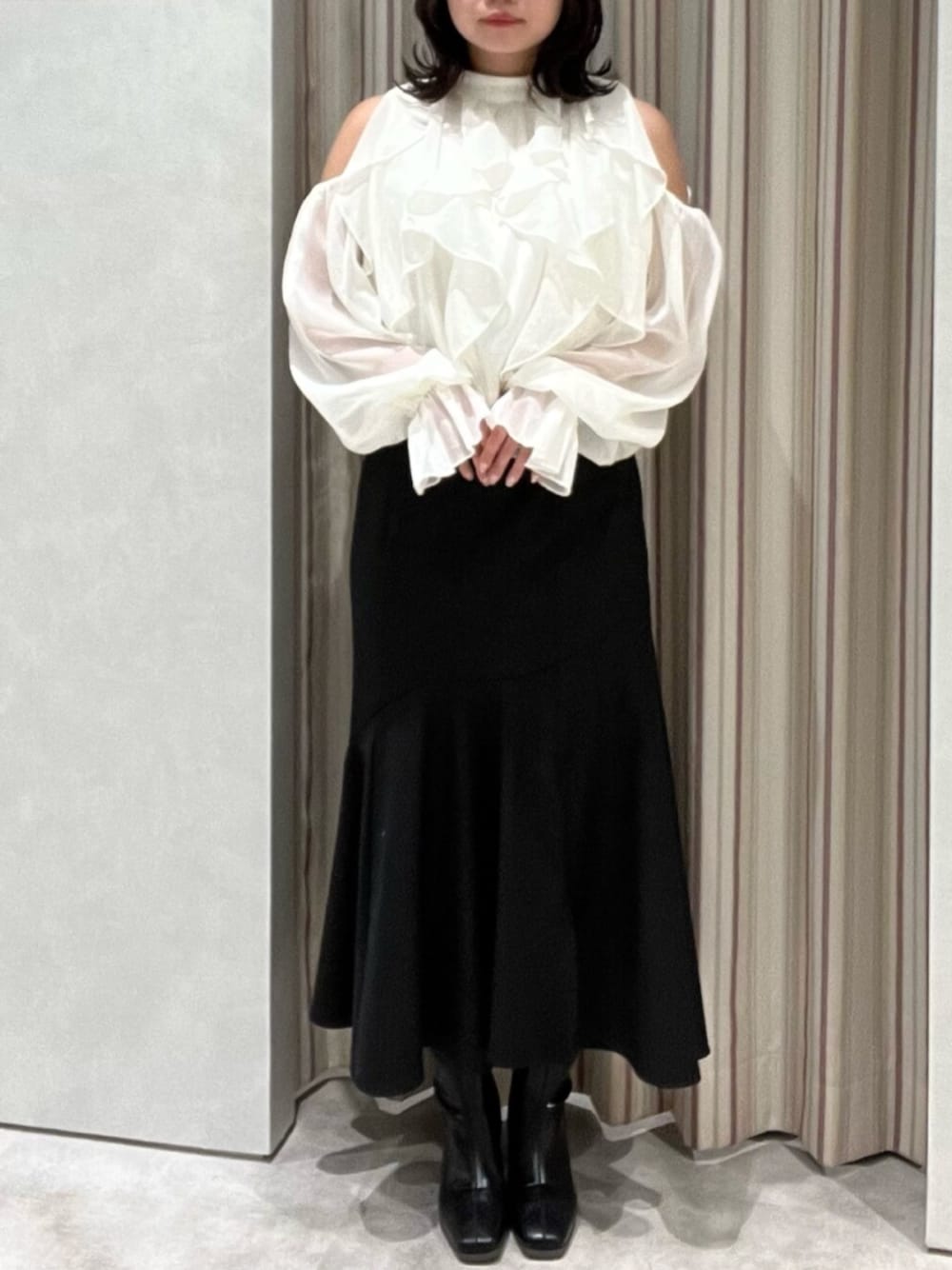 【トップス】フリルのボリュームが程よくカジュアルスタイルでも使えます🙆🏻♀️ バックリボンも取り外し可能の2WAYなので好きな時に付けれます🪄 【ボトムス】ハイウエストでウエスト周りが綺麗にカバーしてくれるアイテムです!バックリボンが可愛いです🫶🏻オールシーズンで使えます! 【シューズ】ヒールの高さは8㎝とスタイル盛れ効果はしっかり出してくれます👢🤍