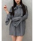 【ジャケット】 身頃と袖のシャーリングがポイントのジャケット! 付属のベルトを巻いてミニワンピにも出来ちゃう万能ちゃん✨ 【チュニック】 大きなリボンタイが甘くてかわいいチュニックシャツ! グレーはストライプなので1枚でも決まります🎀 【ブーツ】 超万能なレースアップブーツ! 23.5cmでMサイズ着用です🐾