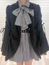 【ジャケット】 身頃と袖のシャーリングがポイントのジャケット! 付属のベルトを巻いてミニワンピにも出来ちゃう万能ちゃん✨ 【チュニック】 大きなリボンタイが甘くてかわいいチュニックシャツ! グレーはストライプなので1枚でも決まります🎀 【ブーツ】 超万能なレースアップブーツ! 23.5cmでMサイズ着用です🐾