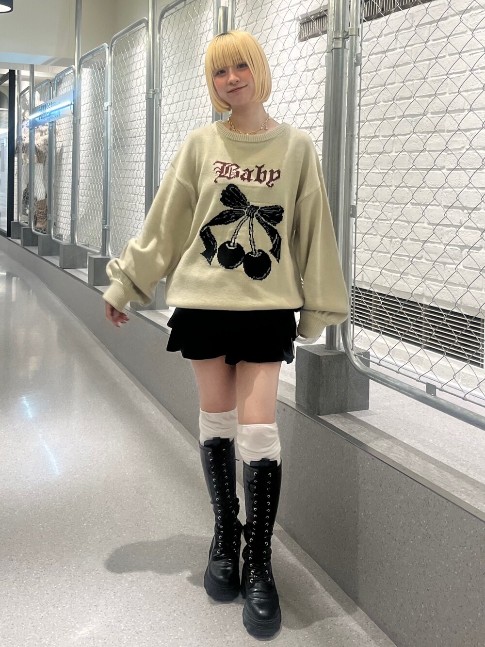 RINA(jouetie)のニット/セーター「ジャガードチェリールーズニット」を使ったコーディネート