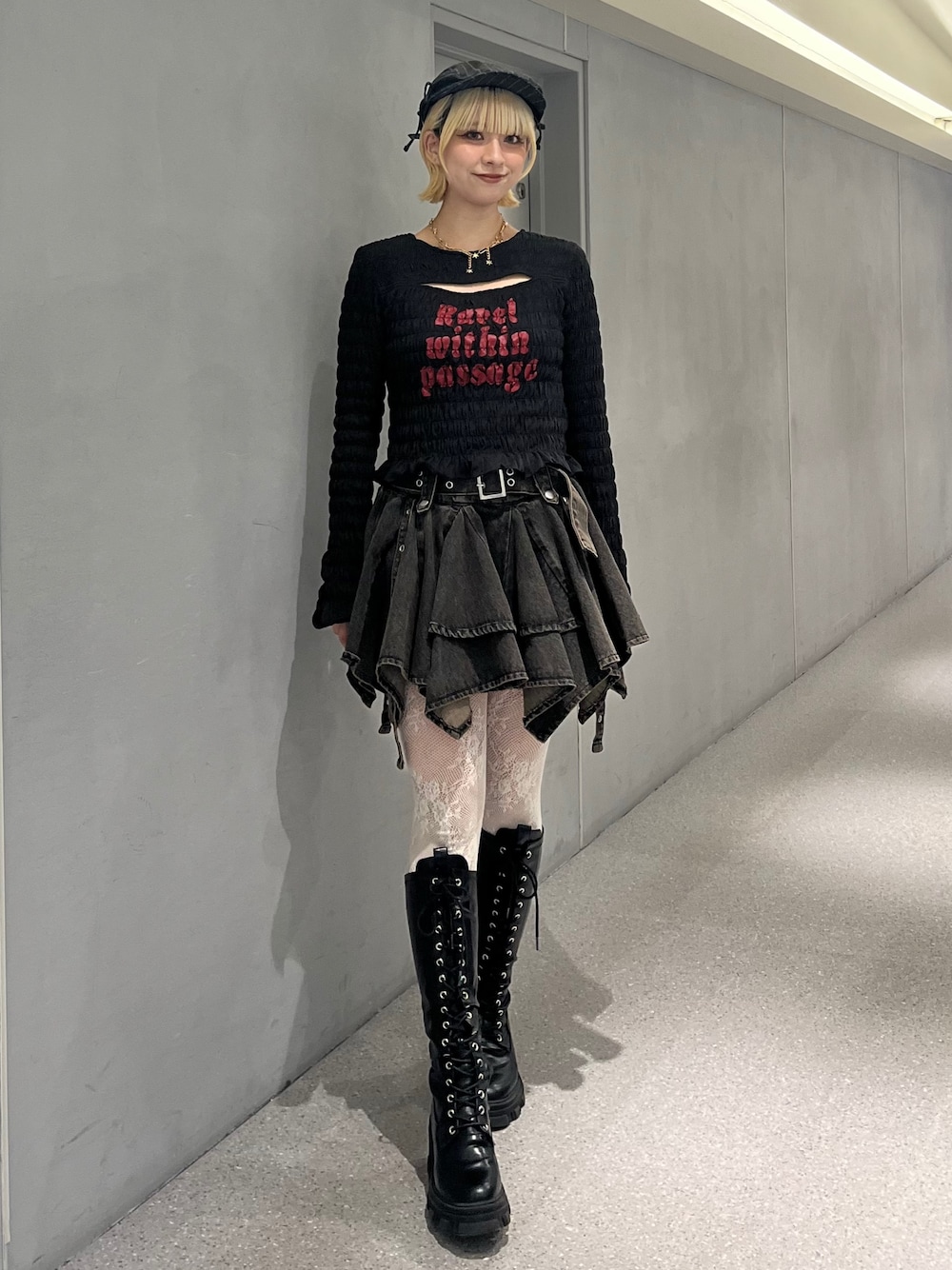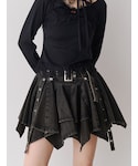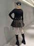 【ハンチング】 ピンストライプで抜け感のあるハンチング! 【トップス】 全体に施したシャーリングで細見えするトップス! タイトなシルエットですが、伸縮性があって着やすさ抜群です✨ 【スカート】 jouetieといえばのアシメヘムスカート! ボリュームたっぷりのデニム生地で脚が細見えします♡♡ 【ブーツ】 ストレッチ素材のレースアップブーツ! 23.5cmでMサイズ着用です🐾