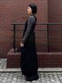 【トップス】 大きくラウンドしたヘムラインが特徴のニットトップス。 そのまま1枚でも着用出来ますが、裾がフレアシルエットになっているのでショートベストやビスチェなどをレイヤードするとバランスが良く、インナーとしても使いやすいアイテムです。UN3D.定番のさらっとした扱いやすいニット素材で着心地も◎ 【ワンピース】 程よい光沢感のある丈夫なコットンポリエステルのツイル生地を使用したジャンパースカート。 ショルダーストラップは動きに馴染んで肩から落ちにくくするためにゴムを入れて、長さ調整も可能です。ウエスト部分はサイズ調整できるドローストリング仕様なのでインナーに合わせて変えて着ていただけます。裾には幅広のゴムを入れておりコクーンのシルエットにしつつ歩きやすさにも配慮しております。