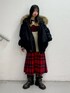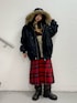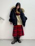 【アウター】 jouetieらしいN2B🙂↕️💞フード部分にファスナーが付いていて、大きな襟にもなります☝🏻🪄ファーのボリュームがあって小顔効果で盛れる🤭中綿で防寒もバッチリ👌見た目より軽くて、着てるのも楽ちん✨✌️ 【ニット】 去年も大人気だったラグランニットが今年もNEWデザインで登場✨✨フロントデザインもお袖のデザインも可愛い🥲💞ゆるゆるっと着れるシルエットも可愛くて好き🫶1枚でもコーディネート決まるから楽チン!! 【スカート】 冬っぽいタータンチェックスカート👍ウール素材でより秋冬っぽい🙂↕️💞シルエットがとっても綺麗なので、難しいと思われがちなミドル丈ですがスタイルアップもできておしゃ見えも👑💕 【ブーツ】 私は普段24.5cmでLサイズ着用!ちょっとゆるっとしてるのが好みなので、ジャストサイズが良かったらMでもいいかも👍去年から流行っているカバーブーツ!ボリューム感が可愛いし、脚が盛れる🥺💕冬も沢山ミニ穿きましょ😘