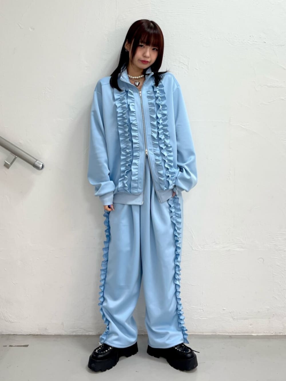 【トップス】 人気アイテムが新色追加で復活✨️✨️フリルでカジュアルすぎないトラックジャケット🫶ルーズシルエットでゆるゆるっと着れるのが可愛い🥹💞セットアップでパンツも出てるのでセットアップで着ても可愛い🤦♀️💖 【パンツ】 トラックジャケットとセットで着れるパンツ🙆♀️中々見ないブルーのパンツで可愛い🥹唯一無二感あるスタイリングが出来ます👼🏻🪽春夏着たい爽やかなカラー🎶 【シューズ】 めっちゃ盛れて可愛い厚底ローファー🫶🏻jouetieらしいスタッズの着いた少し辛めなアイテム⚡️⚡️私はいつも24.5cmでLサイズ履いてます🙋♀️💕 【ネックレス】 パール×シルバーが可愛くて今っぽいネックレス🧚🏻♀️存在感があるのでとってもポイントに✨🥹