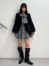 【ジャケット】 ベルトが付いてきて、ミニワンピとしても着れるアイテム✨️✨️春は1枚ワンピできても🙆♀️ギャザーとリボンが可愛い🥺💞他になくてオシャレなシルエットです🧚🏻♀️✨柔らかい生地で、着心地もラクなキレイめジャケット♡︎ᵎᵎᵎ 【ワンピース】 リボンとフリルとチェックの可愛いが詰まったワンピース👊🏻💥大きめりぼんが存在感あって可愛すぎる、、サラッとした生地で春はこれ1枚で🙂↕️🫶🏻 【ブーツ】 クシュクシュっとしたボリュームが激かわなブーツ✨✨ボリュームあるシューズは脚も盛れます> ̫ <ベルトのデザインでコーディネートを締めてくれます✌🏻私は24.5cmでLサイズ履いてます🍀*゜