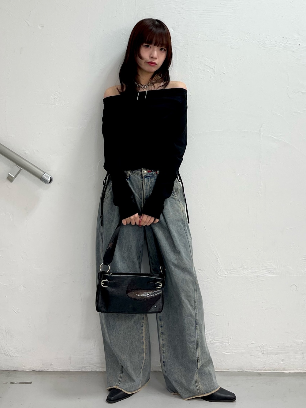【トップス】 薄手で夏手前まで着れそうな、オフショル!!流行りのオフショルでオシャレに大人っぽく✨️✨️コンパクトなシルエットで骨格ウェーブ大優勝コーデ🏆🥇サイドのギャザーも可愛い( ; ; )✨ 【ボトム】 大人気something×PosTokyoのジーンズ👖💕トレンド感のあるバギーパンツ👍とにかくシルエットが綺麗で脚モレ✨✨後ろのポケットの位置が高めで、ヒップラインも綺麗に見えます😚カジュアルやストリートにも、少し綺麗めやかっこよくも着こなせます!160cmSサイズ着用してます🙋♀️ 【バッグ】 かっこいいコーデや、キレめなシーンでも使いやすいバッグ🫶🏻マチがあって中身も見た目以上に入ります✨️光沢感のある生地も可愛くてオシャレでアクセントに👍 【ネックレス】 星いっぱいの存在感たっぷりネックレス🌟🌟キラキラで可愛い👼🏻🫶🏻