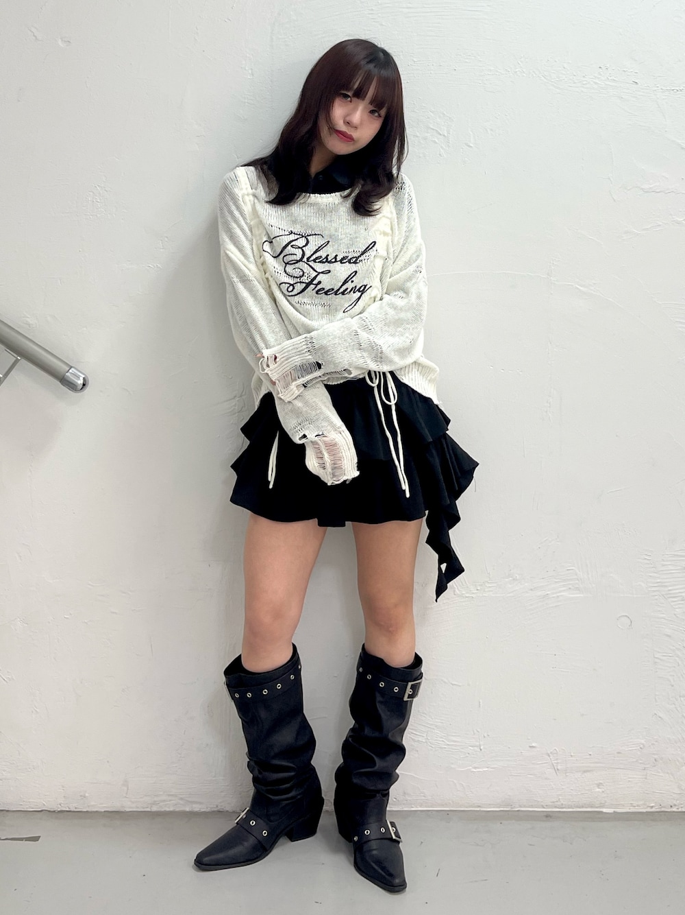 MOMO(jouetie)のニット/セーター「シアーギャザーロゴニット 春服 春ニット」を使ったコーディネート