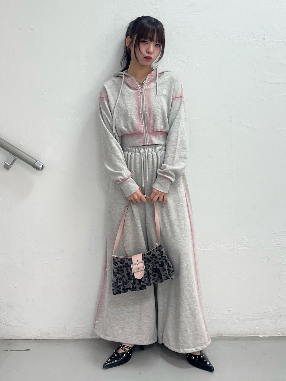 MOMO(jouetie)のスウェットパンツ「バレルレッグルーズスタッズスウェットパンツ【セットアップ対応】」を使ったコーディネート
