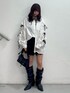【シャツ】 リボンとフリルたっぷりなシャツ👔🎀袖が開いててチラッと肌見せが抜け感🫧キレイめになりがちなシャツをjouetieらしいシルエットで他に無いデザインでお洒落に🎶リボンタイ付いてますが、今回はネクタイにしてみました👍✨ 【ボトム】 レースでふりふりふわふわが可愛いスカート🐈⬛🐈⬛甘めにも甘辛MIXにも使いたいボトム🫶インパン付きで安心です👍ウエスト浅めにはけるのも今っぽい! 【ブーツ】 クシュクシュっとしたボリュームが激かわなブーツ✨✨ボリュームあるシューズは脚も盛れます> ̫ <ベルトのデザインでコーディネートを締めてくれます✌🏻私は24.5cmでLサイズ履いてます🍀*゜