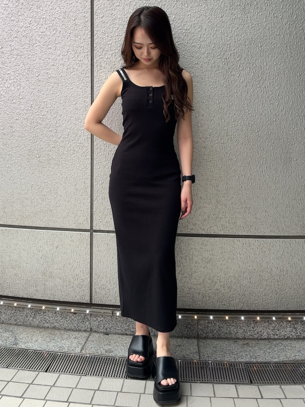 【ワンピース】 胸元に symmetry GYDAのロゴの入ったシンプルなロングワンピースです🤍 後ろにスリットがあるため、歩く時にもストレスフリーでサラッと着れるワンピースです! スタイルアップして見えるので、ロングワンピースが苦手な方でも挑戦しやすいアイテムです! 160cmの私で足首よりも2,3cm上くらいの丈です✨ 【シューズ】 大人気の厚底サンダルです! どんなに長く履いていても足が疲れなく、12cmのヒールでスタイルも良く見えます🫶🏼