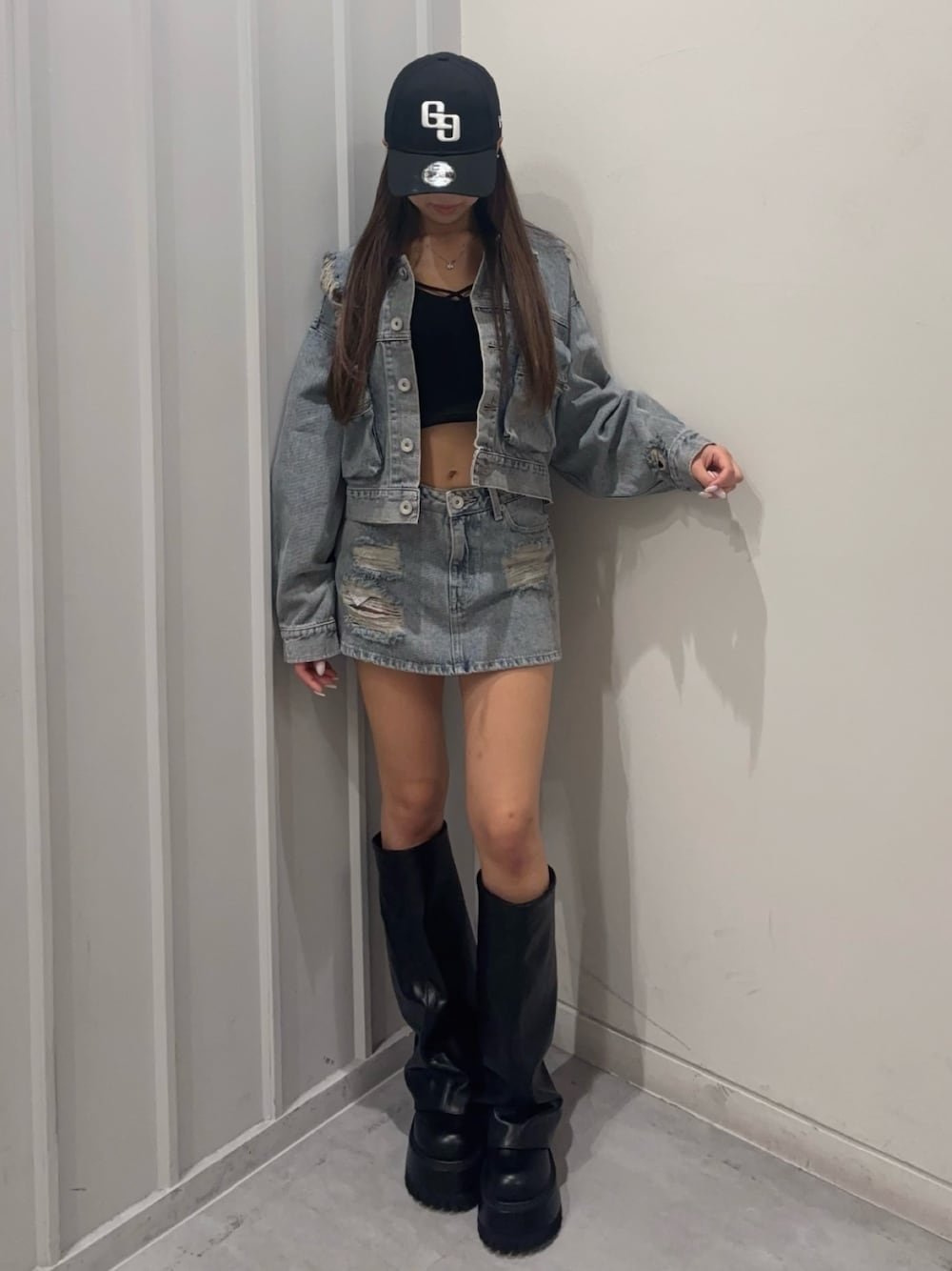 【INNER】 トップスとしても、インナーとしても大活躍のバインダービスチェです!薄めのパットが付いているので一枚でも着れますが、ブースターブラトップとの着用がオススメです‼️ 【OUTER】 肩の部分にダメージの入ったデニムのジャケット♡シルエットも完璧で可愛い🩷 【BOTTOMS】 セットアップのスカートもダメージ入ってます✨ 秋のチェックシャツなどと着ても可愛いです‼️ 私はsサイズを着用してます‼️ 【BOOTՏ】 カバー付きのブーツでボリュームのあるシルエットが超可愛い‼️ 私は24.5cmでLサイズを履いてます☺️