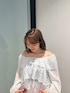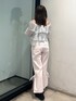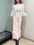 トップスは近づいてよくみてみると...ハート柄になっていてとっても可愛いですー!!👀♡ デニムパンツはサイドにスリットも入ってるので歩きやすさもあって機能性も抜群です!! ピンクの色も肌馴染みがいい色なので、ブラウスはもちろんtシャツなど夏のアイテムと合わせてあげたらもっと可愛いコーデになると思います💕