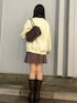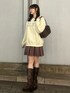 プレッピーコーデ トップス→大きなカルナのロゴが入っていて、周りをお花のデザインで縁取っているためガーリーで可愛いですよ☺️♡ ワンピース→ボトムス風に見えてワンピースを合わせて襟とスカートを出してます! この組み合わせすごい可愛いのでおすすめです! ブーツ→普段23.5cmでMサイズを着用しています。
