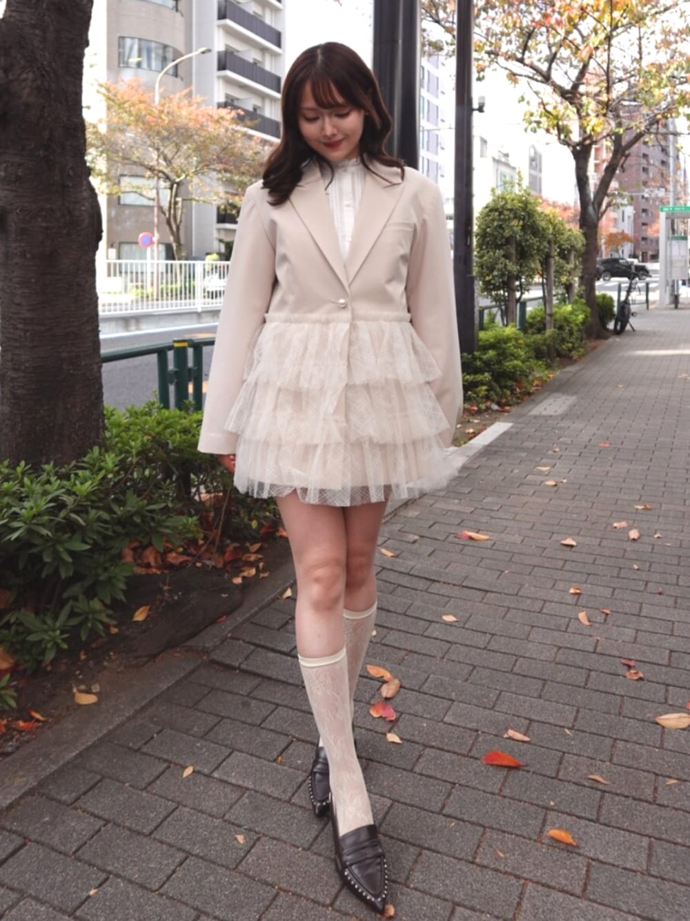 春の新作きてみました🌸 トップス→ホワイトのブラウスは春には絶対持っておきたい1着です! お袖の部分にもフリルがついているのでジャケットを脱いだらさらに可愛さもupします⤴︎ ジャケット→チュールが施されていて他には絶対にないジャケットです🧥 すごく淡い色味なので春っぽくてお顔もワントーン上がっちゃいます💖 シューズ→スポッと履けちゃうのでとっても楽ちんですよー! 普段23.5でMさいず着用しています。