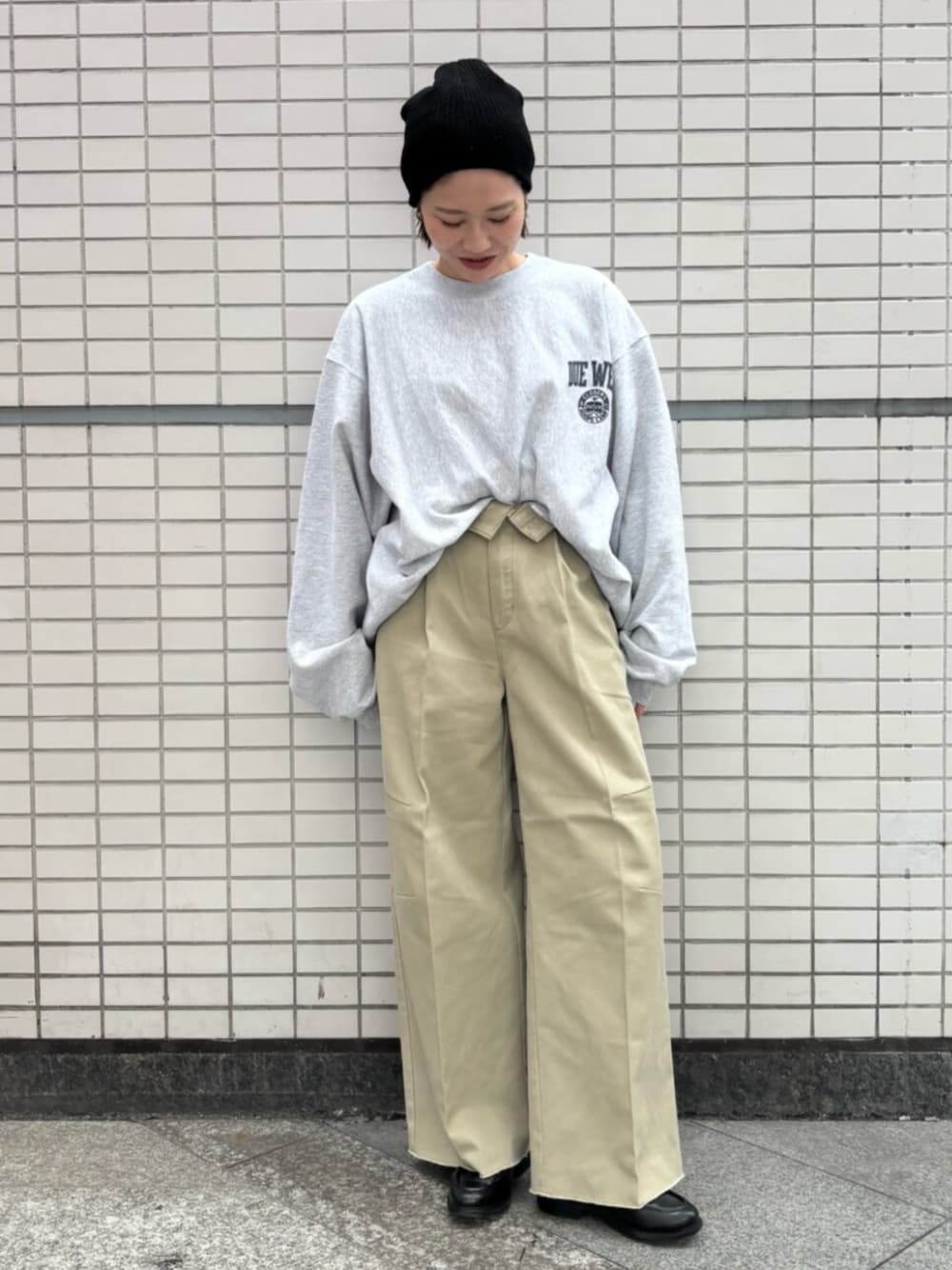【トップス】 154センチでフリーサイズ着用 袖のズルズル感が可愛い メンズサイズっぽさと肩のレディースサイズで華奢に見せてくれるシルエットです 中にシャツやロンTも着れるくらいゆとりがあります 【ボトム】 Dickeys Sサイズ着用 ウエスト折り返してロゴ出しても可愛いです