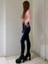 【トップス】 ウエストにロゴがデザインされている シャギートップス❤︎ 肌触りのいい長めの毛なのでチクチクもしません! ウエストゴムでスタイルアップして見えます! 【デニム】 GYDAで大人気のウエストクロスのスキニーのダメージバージョンが登場✨ ウエストの部分がクロスになっているのがポイント!ハイウエストなのでショート丈のトップスと相性抜群です!! 156cm,xsサイズでデニムの裾がくるぶしあたりにくるので長過ぎず丁度いい長さで着用できました❤︎ 【シューズ】 23.5cmでMsize着用です! ヒール高めですが高低差少なく安定感もあるので足も疲れにくく歩きやすいです!!